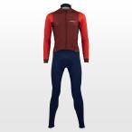 上半身には、ウェア表面についた水分を水滴にして分散させる耐久撥水加工を施し伸縮性に優れたイタリア製ファブリックを採用、急な雨や雪にも対応します。ウィンドブレーカーやレッグウォーマーなどを組み合わせれば秋から春までお使い頂けます。